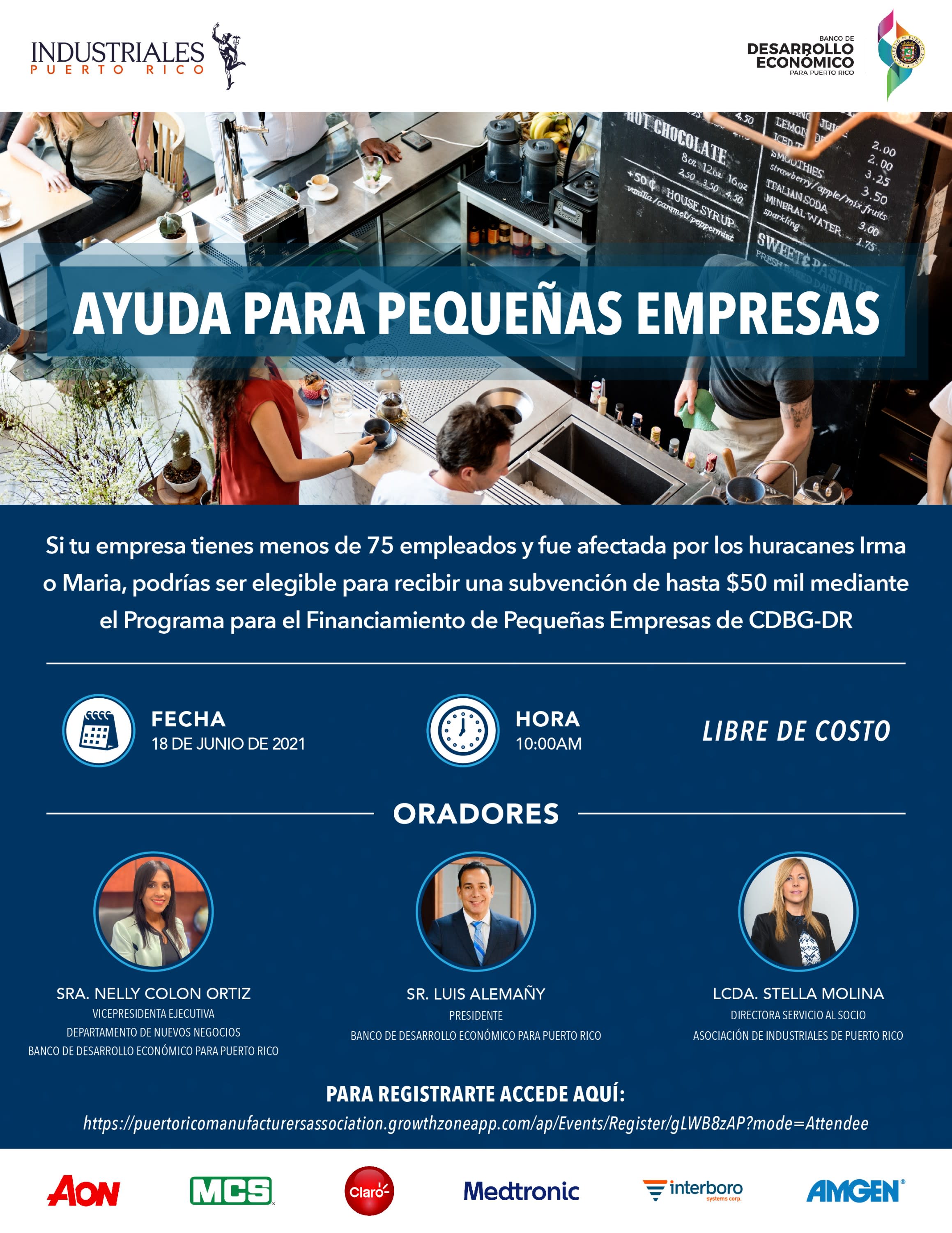 Tema: Si tu empresa tienes menos de 75 empleados y fue afectada por los huracanes Irma o Maria, podrías ser elegible para recibir una subvención de hasta $50 mil mediante el Programa para el Financiamiento de Pequeñas Empresas de CDBG-DR