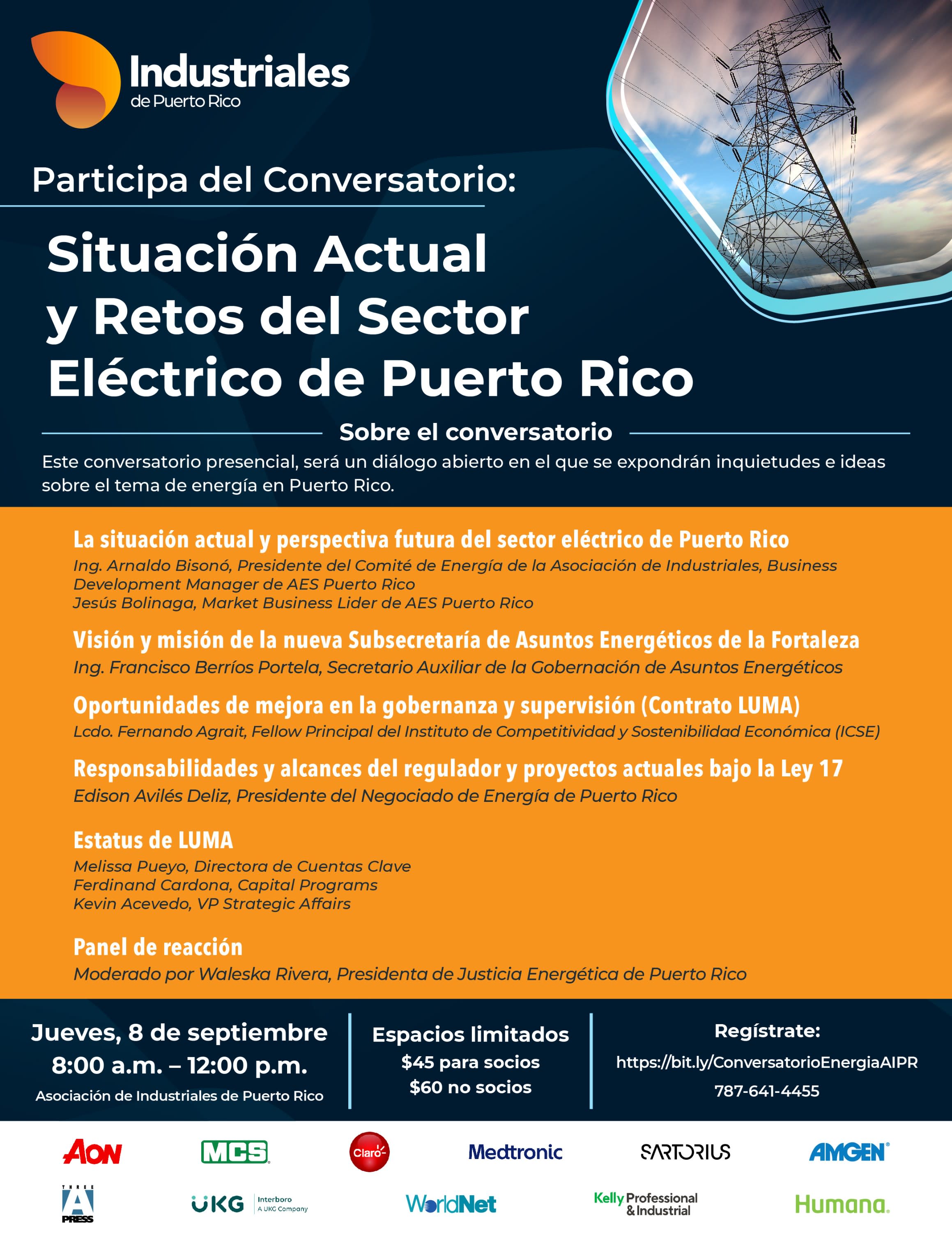 Este conversatorio presencial será un diálogo abierto en el que se expondrán inquietudes e ideas sobre el tema de energía en Puerto Rico.