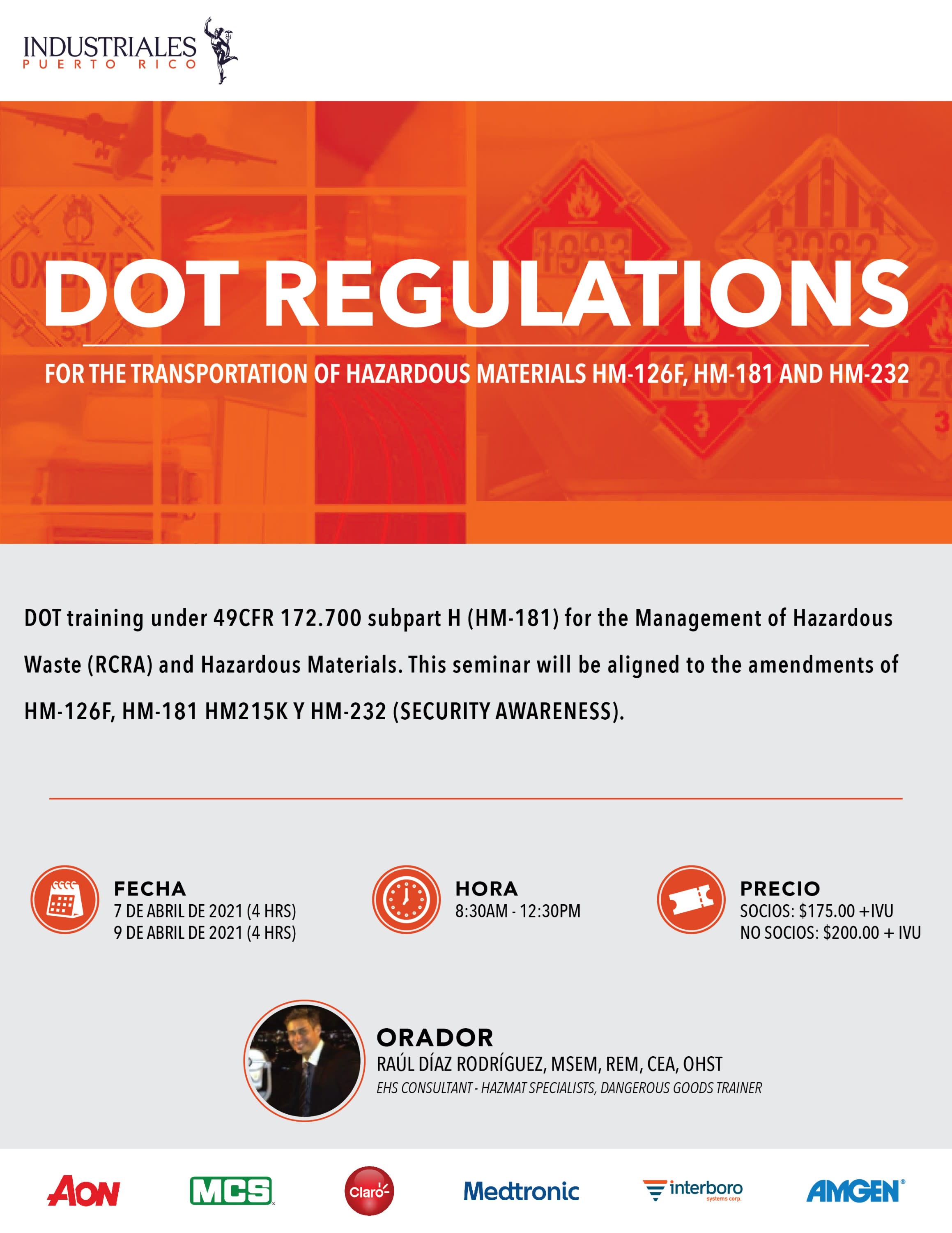 DOT- 8 horas con certificación / 4hrs el 7 de abril y 4 hrs. 9 de abril