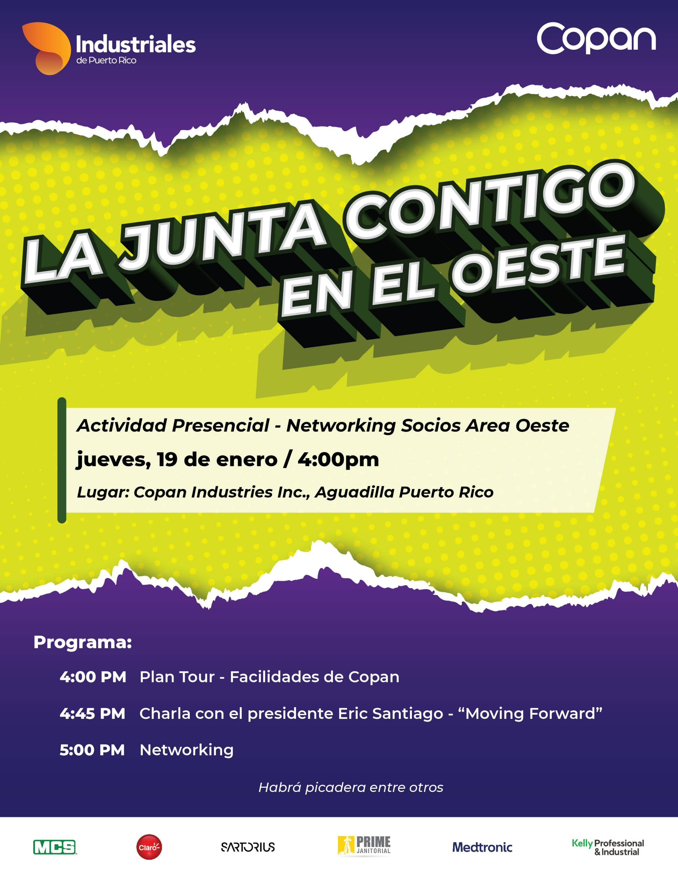 Ven a compartir con tu Junta de Directores y los socios de la Región Oeste. Además, tendremos un recorrido por las facilidades de Copan Industries.