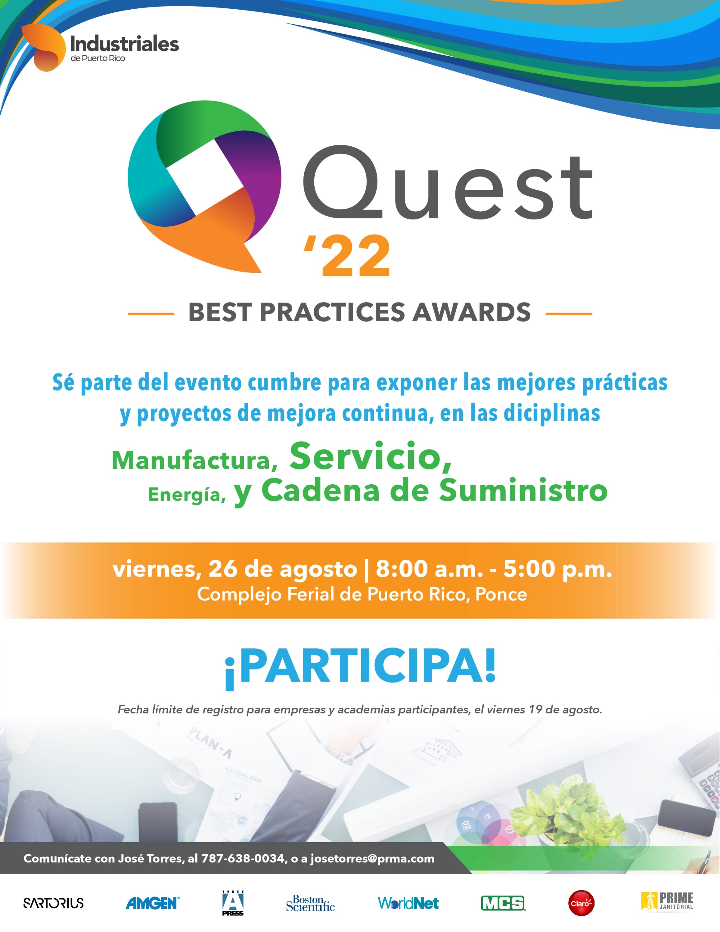 Por más de diez años consecutivos, la iniciativa Quest de la Asociación de Industriales de Puerto Rico, ha tenido como finalidad mejorar la competitividad de las empresas establecidas en la isla, a través del intercambio de conocimiento y la exposición a mejores prácticas. Es la plataforma idónea para dar a conocer mejores prácticas y proyectos de mejora continua a través de diversas disciplinas.